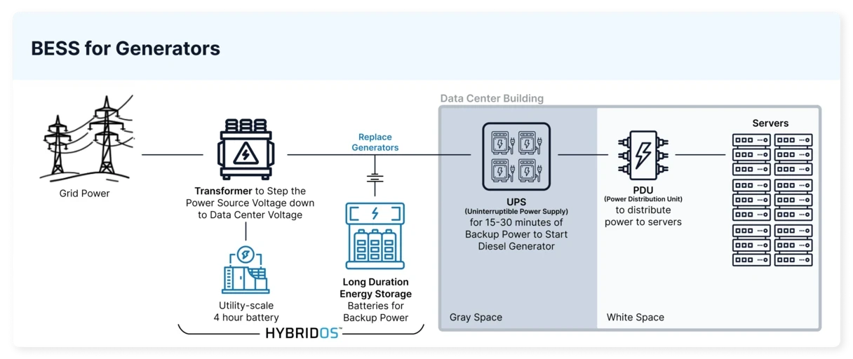 BESS can be used as a direct replacement for conventional backup generators, transforming data center architecture while reducing overall project timeline and capex.