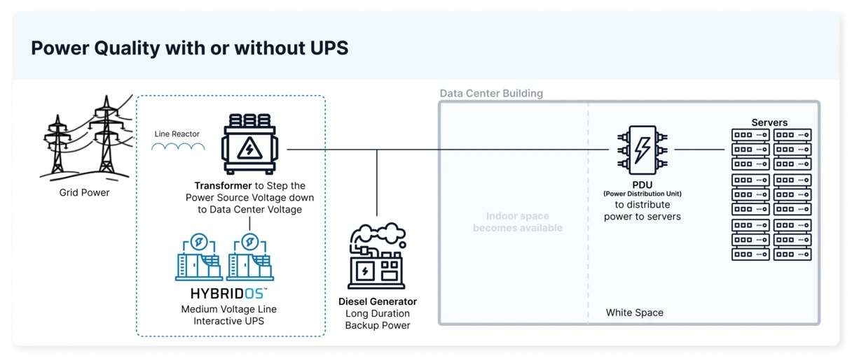 BESS can function as a medium-voltage line-interactive UPS system, addressing the power quality challenges of modern data centers while simplifying the overall system structure.